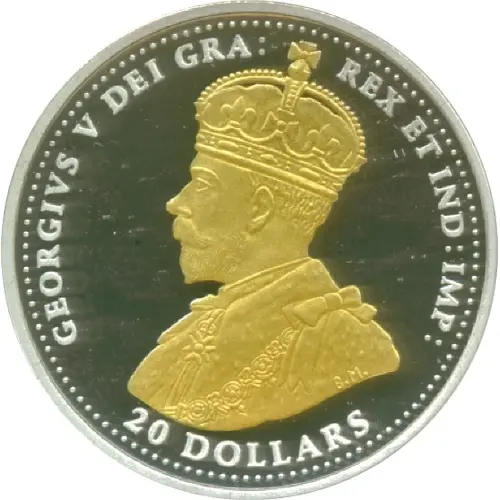 GEORGIVS V DEI GRA: REX ET IND: IMP B.M. 20 DOLLARS (Translation: George V, King and Emperor of India by the Grace of God) |