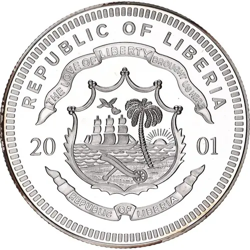 | Obverse lettering | REPUBLIC OF LIBERIA THE LOVE OF LIBERTY BROUGHT US HERE 20 01 REPUBLIC OF LIBERIA |