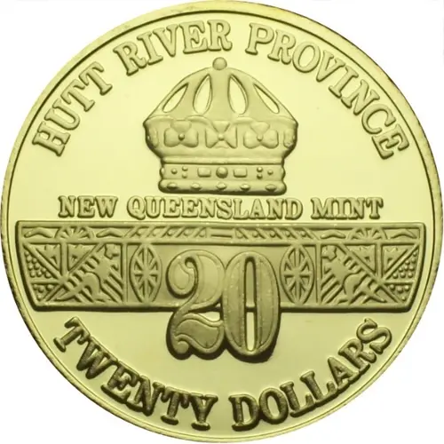 | Obverse lettering | HUTT RIVER PROVINCE NEW QUEENSLAND MINT TWENTY DOLLARS 20 |