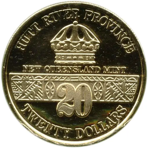 | Obverse lettering | HUTT RIVER PROVINCE NEW QUEENSLAND MINT 20 TWENTY DOLLARS |