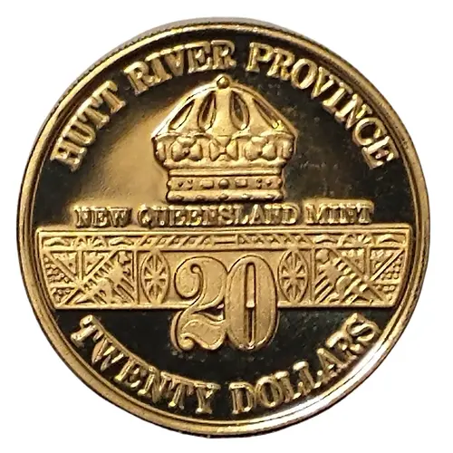 | Obverse lettering | HUTT RIVER PROVINCE NEW QUEENSLAND MINT 20 TWENTY DOLLARS |