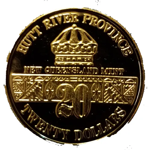 | Obverse lettering | HUTT RIVER PROVINCE NEW QUEENSLAND MINT 20 TWENTY DOLLARS |