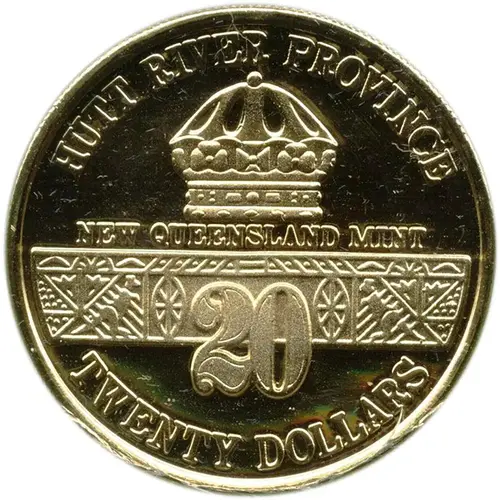 | Obverse lettering | HUTT RIVER PROVINCE NEW QUEENSLAND MINT 20 TWENTY DOLLARS |