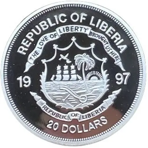 | Legenda do anverso | REPUBLIC OF LIBERIA 19 97 20 DOLLARS |