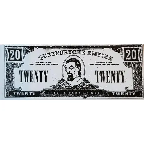 | Obverse lettering | NOT NEGOTIABLE QUEENSRYCHE EMPIRE THIS NOTE IS NOT LEGAL TENDER FOR ANY PURPOSE TWENTY THIS IS PLAY MONEY |