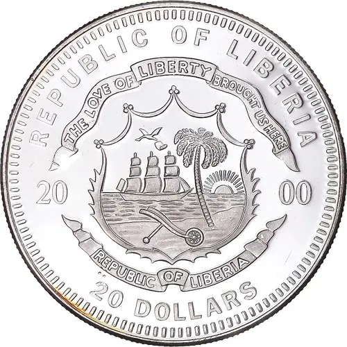 | Obverse lettering | REPUBLIC OF LIBERIA THE LOVE OF LIBERTY BROUGHT US HERE 20 00 REPUBLIC OF LIBERIA 20 DOLLARS |