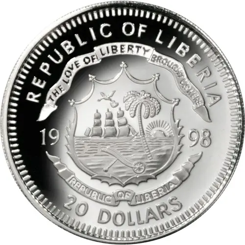 | Legenda del dritto | REPUBLIC OF LIBERIA THE LOVE OF LIBERTY BROUGHT US HERE 1998 REPUBLIC OF LIBERIA 20 DOLLARS |