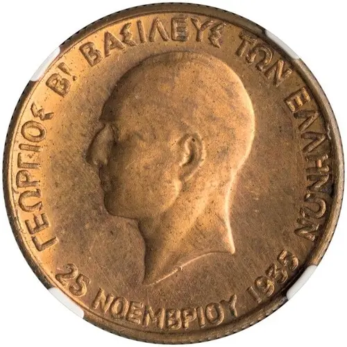 | Obverse lettering | ΓΕΩΡΓΙΟΣ Β! ΒΑΣΙΛΕΥΣ ΤΩΝ ΕΛΛΗΝΩΝ 25 ΝΟΕΜΒΡΙΟΥ 1935 (Translation: George B! King of the Greeks 25th of November 1935) |