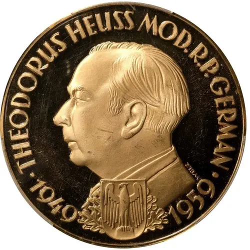 | Obverse lettering | THEODORUS HEUSS MOD R P GERMAN 1949-1959 |