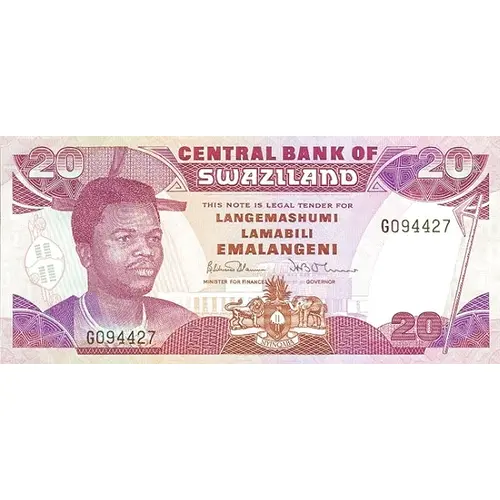 | Reverse lettering | CENTRAL BANK OF SWAZILAND TWENTY EMALANGENI |