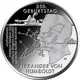 | Reverse description | Silhouette of Alexander von Humboldt, a scheme of his travels, his signature and a volcano |