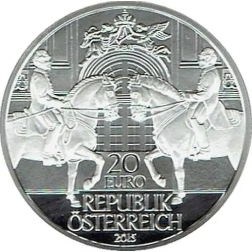 | Popis líce | Two riders on horses in face in front of portal of Spanish Court Riding School in Vienna. `20 Euro` between legs of horses, name of country below |