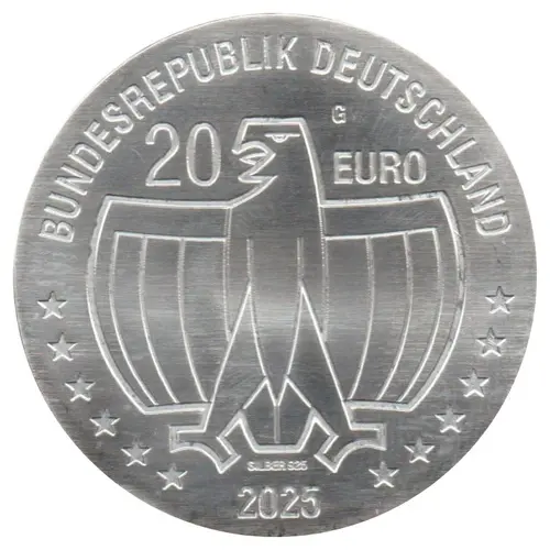 | Obverse lettering | BUNDESREPUBLIK DEUTSCHLAND G 20 EURO SILBER 925 2025 (Translation: Federal Republic of Germany G 20 Euro Silver 925 2025) |