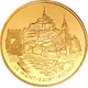View of Mont Saint-Michel, below the name of the monument `LE MONT-SAINT-MICHEL` and the Greek alpha letter `α` in which is the year `2002`. |