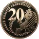 Map of the countries of the European Union in 2002. The face value `20 €`, an olive branch and the twelve stars of the European Union. |
