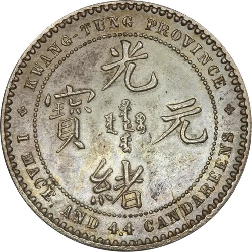 | Obverse lettering | KWANG-TUNG PROVINCE 光 ᠪᠠᡩᠠᡵᠠᠩᡤᠠ 寶 ᠶᡠᠸᠠᠨ ᠪᠣᠣ 元 ᡩᠣᡵᠣ 緒 1 MACE AND 4 ⅗ CANDAREENS (Translation: Guangxu (Emperor) / Yuanbao (Original currency) Guangxu (Emperor) / Yuanbao (Original currency)) |