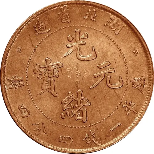 造省北湖 光 ᠪᠠᡩᠠᡵᠠᠩᡤᠠ 寶 ᠶᡠᠸᠠᠨ ᠪᠣᠣ 元 ᡩᠣᡵᠣ 緒 釐四分四錢一平庫 (Translation: Made in Hupeh Province Guangxu (Emperor) / Yuanbao (Original currency) Guangxu (Emperor) / Yuanbao (Original currency) Worth 1 Mace and 4.4 Candareens (weight)) |