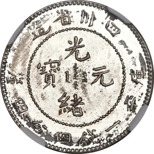 造省川四 光 ᠪᠠᡩᠠᡵᠠᠩᡤᠠ 寶 ᠶᡠᠸᠠᠨ ᠪᠣᠣ 元 ᡩᠣᡵᠣ 緒 釐四分四錢一平庫 (Translation: Made in Szechuan Province Guangxu (Emperor) / Yuanbao (Original currency) Guangxu (Emperor) / Yuanbao (Original currency) Worth 1 Mace and 4.4 Candareens (weight)) |