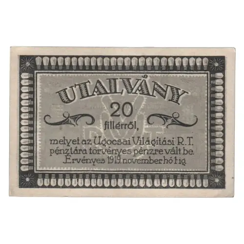 20 Fillér Ugocsai Világítási Rt., Nagyszőllős