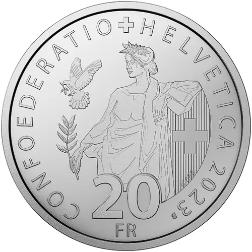 | Opis líce | CONFOEDERATIO HELVETICA 2023 20 FR B 999.9 (Translation: Swiss Confederation.) |