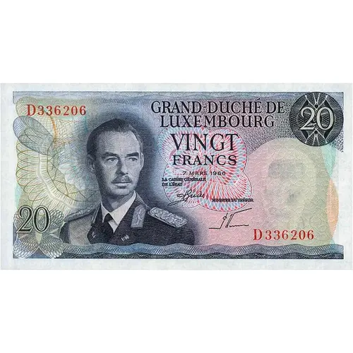 | Obverse lettering | Grand-Duché de Luxembourg Vingt Francs (Translation: Grand Duchy of Luxembourg Twenty Francs) |