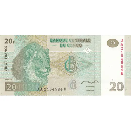 | Obverse lettering | Banque Centrale Du Congo vingt francs |