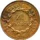 A crown of oak inside the circular legend (French motto) and a rosette at the bottom. Value in figures and legend on 2 lines of fields in the center. |
