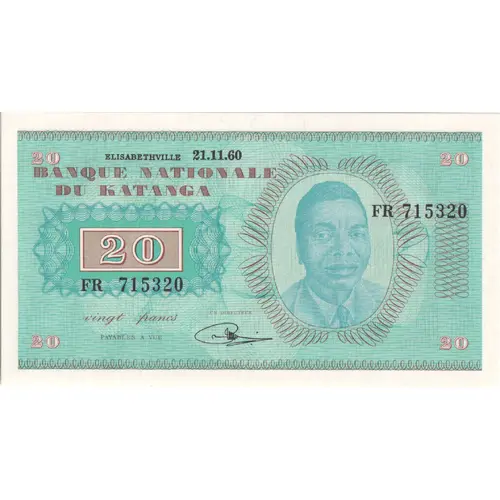 | 正面铭文 | Banque Nationale du Katanga vingt francs payables à vue |