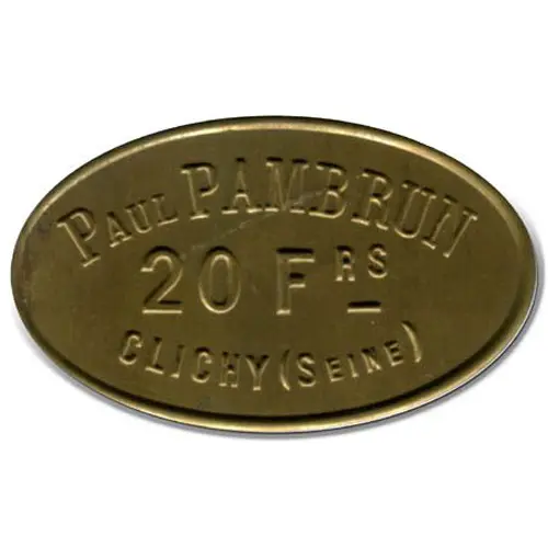 | Obverse lettering | Paul PAMBRUN 20 Frs Clichy (Seine) |