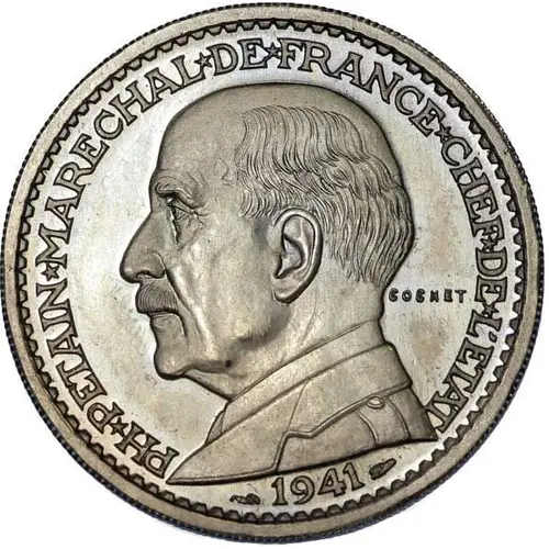 | Obverse lettering | PH* PETAIN* MARECHAL* DE* FRANCE* CHEF* DE* L`ETAT 1941 COCHET |
