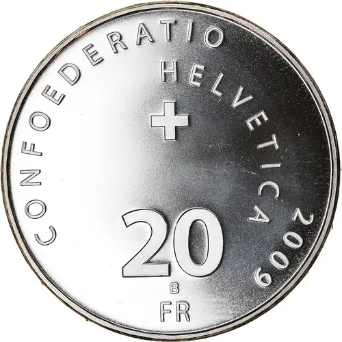 | Obverse lettering | CONFOEDERATIO HELVETICA 2009 20 B FR (Translation: Swiss Confederation.) |