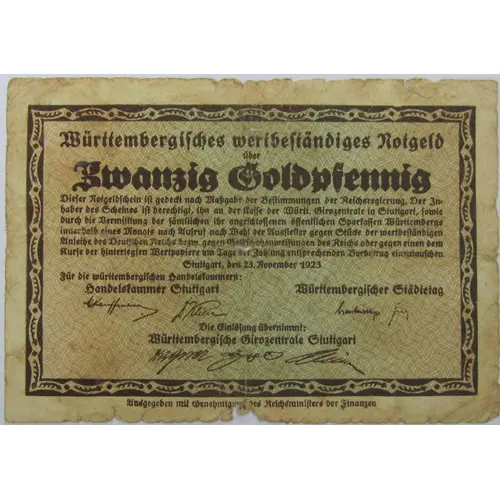 | Value | 20 Goldpfennig (0.20) |