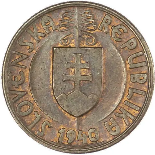 Artistry: While specific engraver attribution for patterns can be challenging, the stylistic approach aligns with leading Slovak numismatic artists of the era, notably Anton Hám. The design embodies a conservative, nationalistic school, prioritizing clear symbolism. The obverse typically presents the Slovak double cross within a shield, surrounded by the legend. The reverse features the denomination, often adorned with stylized Linden leaves—a potent national symbol—melding traditional heraldic elements with an emergent national identity.
