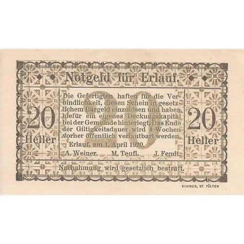 | Issuer | Erlauf im Nibelungengau, Market Town of |