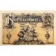 Illuminated letter `H` in larger font and separate box to the rest of the name `Hofkirchen`, with `a.d.Tr.` abbreviated for `an der Trattnach`. The denomination of the banknote is given in the top right in a framed box symmetrical to that holding the `H`. Below this title is the town`s coat of arms, including a quartered ibex representing the personal crest of Pastor Moritz Prechensteiner, the greatest benefactor to Hofkirchen. This is explicitly referenced below as `Wappen [coat of arms of] Prechensteiner`. |