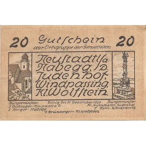 | Issuer | Neustadtl an der Donau, Nabegg, Judenhof, Windpassing, and Klein Wolfstein, Municipalities of |