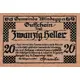 Gemeinde Windegg Gutschein über Zwanzig heller Aus grund des gemeindeaussch v. 15 5 1920 gibt die Gemeinde Windegg bis zum betrage v. 28.000 k aus u. haftet für die richtige Einlösung d. scheine in gesetzl Bargeld bis 31 Dezember 1920. Der Bürgermeister (Translation: Windegg community Voucher for twenty heller According to the municipal committee meeting of 15 5 1920 the municipality of Windegg may issue notes up to the amount of 28,000 krone and is responsible for correct redemption of the Notes in legal cash until December 31, 1920. The mayor) |