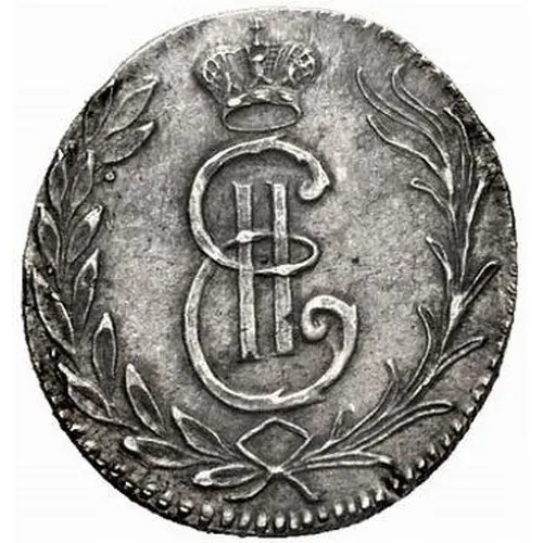 Ön yüz açıklaması Crowned `EII` monogram of Empress Catherine II. Wreath with laurel branch and palm leaf tied with a ribbon below.