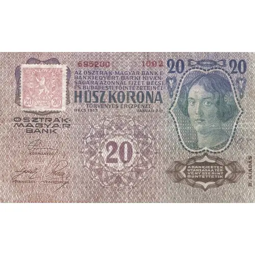 | Obverse description | Red 20 Haleřů stamp on AUSTRIA P#14. |