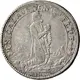 | Reverse description | Kneeling Saint holding rosary within sprigs and circle. |