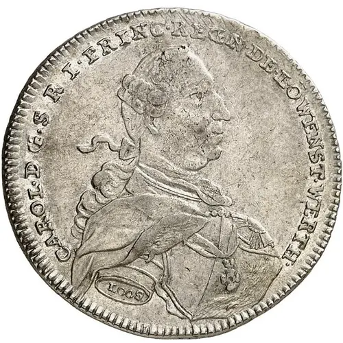 | Obverse lettering | CAROL DG S R I PRINC REGN DE LÖWENST WERTH LOOS |