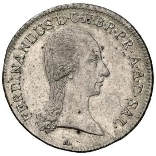 Portrait facing right of Ferdinand of Habsburg (Ferdinand III Grand Duke of Tuscany), legend (start 1h) for `Ferdinandus Dei Gratia Hungariae Bohemiae Regius Princeps, Archidux Austriae Dux Salisburgensis` |