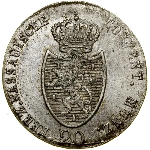 | Obverse lettering | HERZ. NASSAUISCHE CONVENT. MÜNZ. 20 |