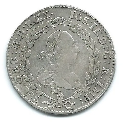 | Beschrijving voorzijde | Laureate portrait right of Joseph II of Habsburg within a wreath, mint mark under. Legend for `Joseph II Dei Gratia Romanorum Imperator Semper Augustus Germaniae Hungariae Bohemiae Rex`. |
