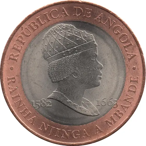 | نوشتههای روی سکه | REPÚBLICA DE ANGOLA 1582 1663 RAINHA NJINGA A MBANGE (Translation: Republic of Angola 1582 1663 Queen Rainha Njinga A Mbande) |