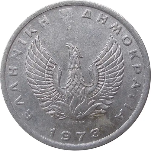 | Legenda awersu | ΕΛΛΗΝΙΚΗ ΔΗΜΟΚΡΑΤΙΑ Ι. ΣΤΙΝ 1973 (Translation: HELLENIC REPUBLIC I. STIN 1973) |