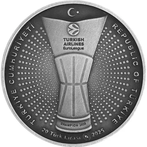 Légende de l’avers TÜRKİYE CUMHURİYETİ REPUBLIC OF TÜRKİYE TURKISH AIRLINES EuroLeague CHAMPION 2025 20 Türk Lirası 2025