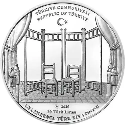 | Legenda del dritto | TÜRKİYE CUMHURİYETİ REPUBLIC OF TÜRKİYE 2025 20 Türk Lirası GELENEKSEL TÜRK TİYATROSU |