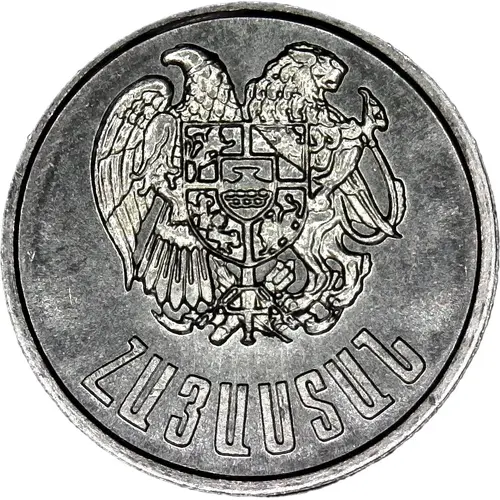 Artistry: While the specific engraver for this low-denomination issue is not widely documented, the coin's design adheres to a post-Soviet nationalistic aesthetic. The obverse prominently features the Armenian coat of arms, depicting Mount Ararat, an eagle, and a lion supporting a shield representing historical dynasties. This powerful national emblem serves as the central artistic statement. The reverse presents the denomination "20 Luma" and the year "1994" in a clear, functional manner, often encircled by a simple geometric pattern, emphasizing legibility.