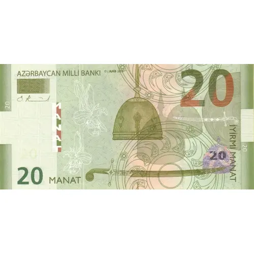 | Legenda del dritto | AZƏRBAYCAN MİLLİ BANKI İYİRMİ MANAT (Translation: National Bank of Azerbaijan, Twenty Manat) |